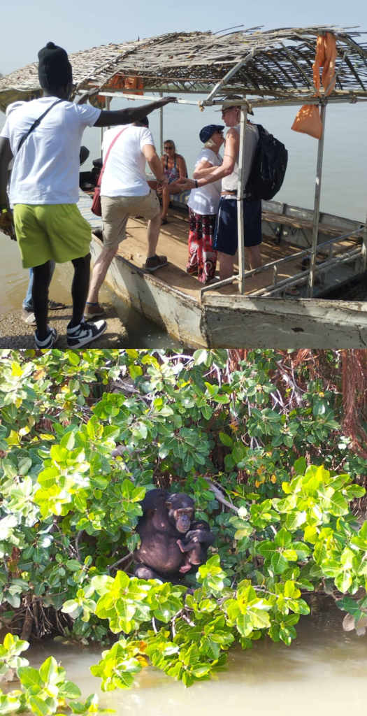 A trip to Janjanbureh is a culturally wonderful adventure with an opportunity to have a boat trip and experience the expansiveness of the River Gambia and spot hippos, crocodiles, monkeys and birdlife along the river bank. It’s also the home of the Kankurang Masquerade, a protective spirit in Mandinka tradition. It is also home to the Chimp Rehabilitation Project.