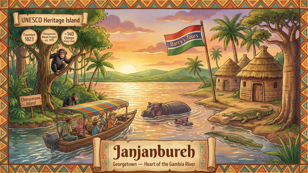 Janjanbureh — Georgetown, Heart of the Gambia River Step back in time and discover one of West Africa’s most captivating hidden gems. Janjanbureh Island sits 300 km upstream from Banjul along the majestic River Gambia, and its rich colonial history is written into every corner of the town. Founded in 1823 and formerly known as Georgetown, this UNESCO Heritage Island is home to one of the oldest Methodist churches in sub-Saharan Africa, charming 19th-century colonial buildings, and a warm, welcoming community of around 3,600 people. Whether you are a history lover, a culture seeker or simply looking to escape the beaten track, Janjanbureh offers an authentic Gambian experience unlike anywhere else in the country.