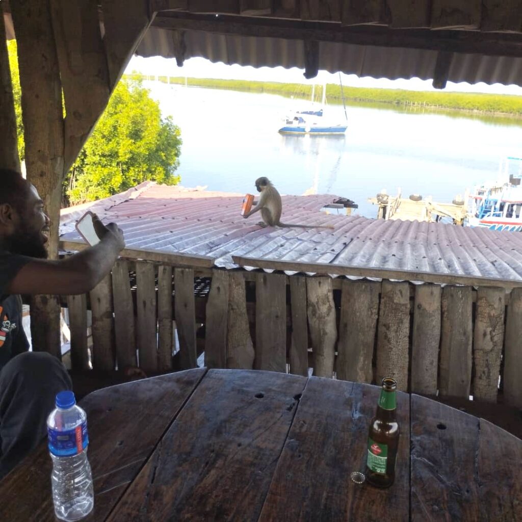 Denton Bridge is a harbour from which you can take a brightly coloured pirogue out through the mangrove swamps to the ‘Robinson Crusoe’ style restaurant on stilts at Lamin Lodge. There you’ll be able to order lunch but be mindful of the plentiful monkeys! Views are lovely and it’s a very relaxing atmosphere.